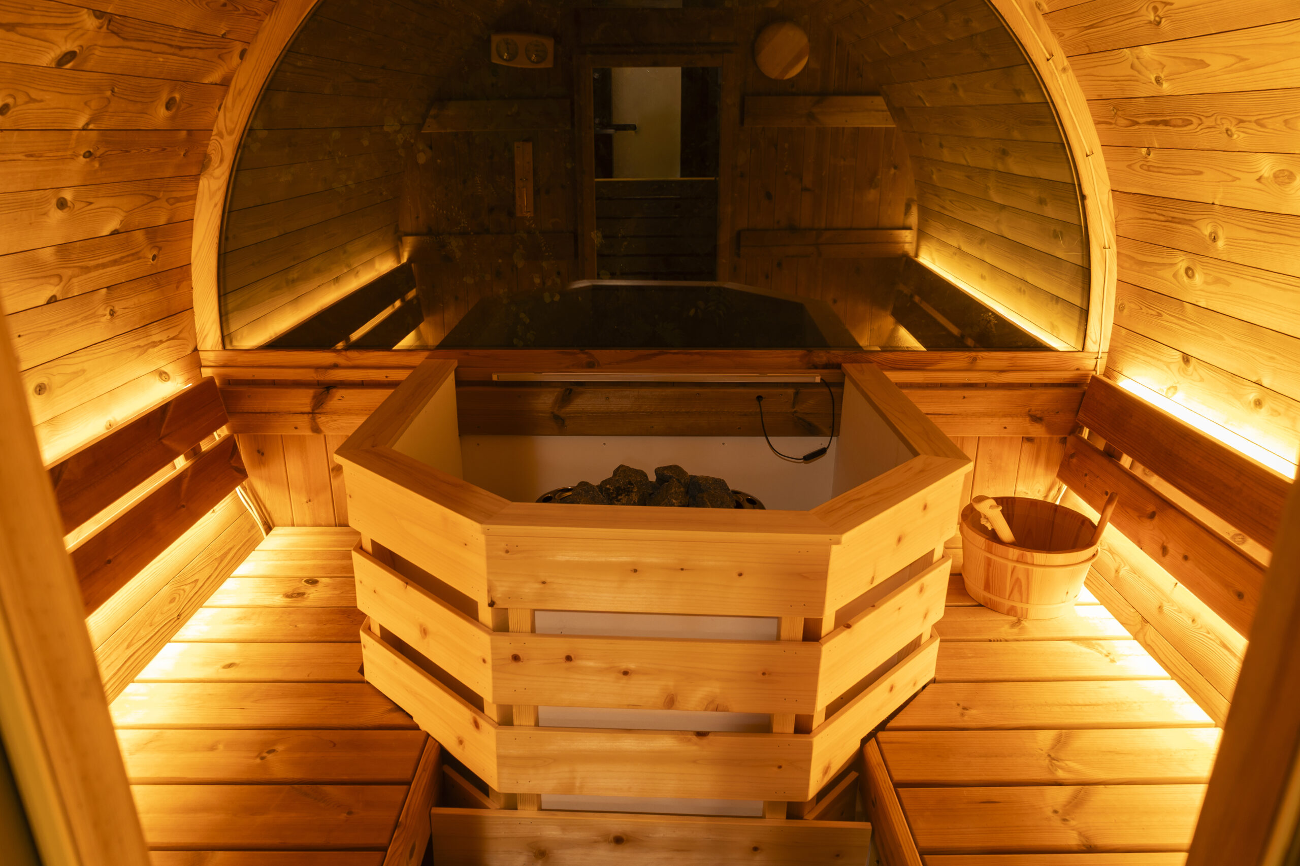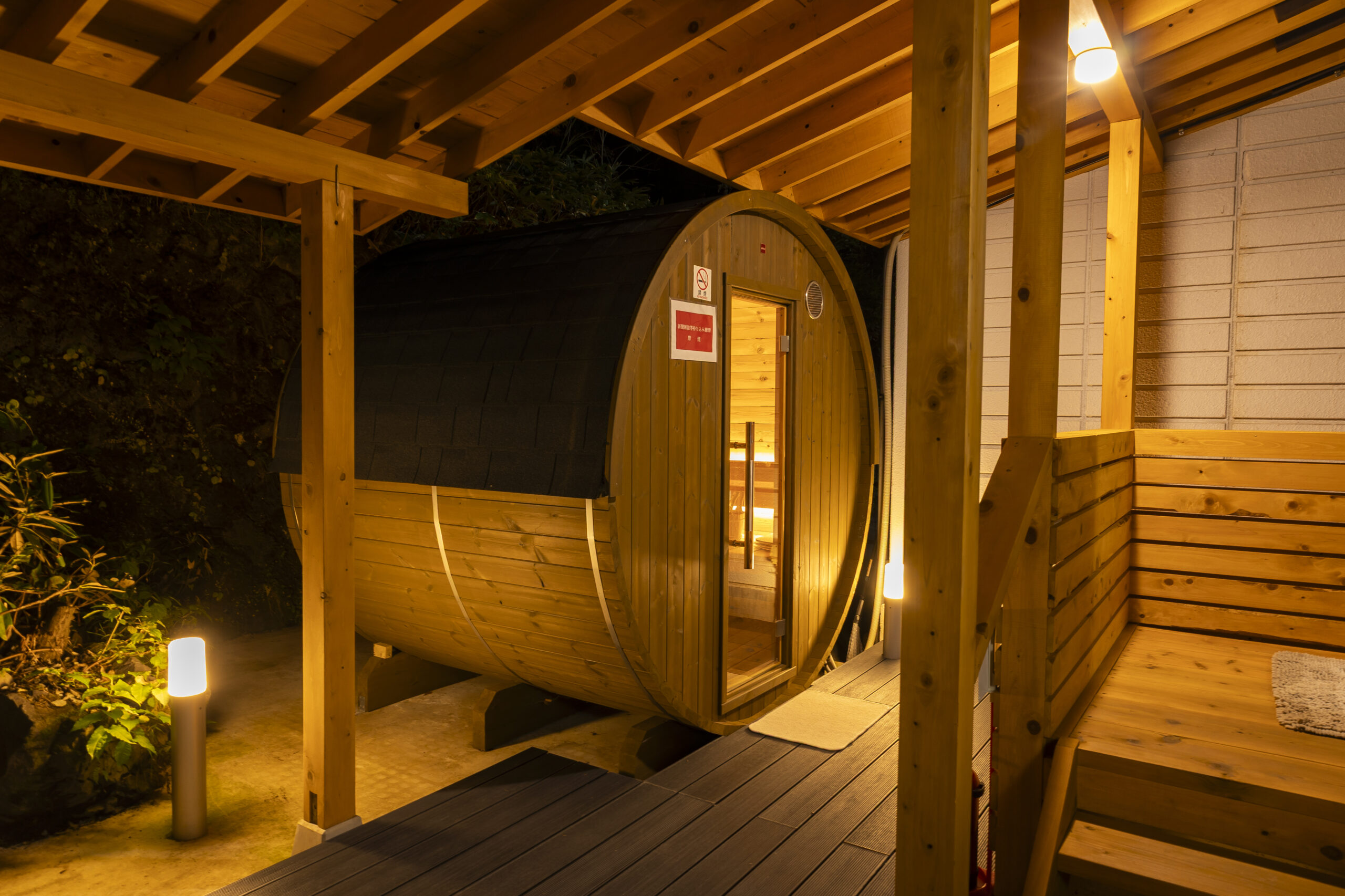 各棟に完備された専用サウナでは、天然木の香りと高温の熱気に包まれながら心身をリセット。